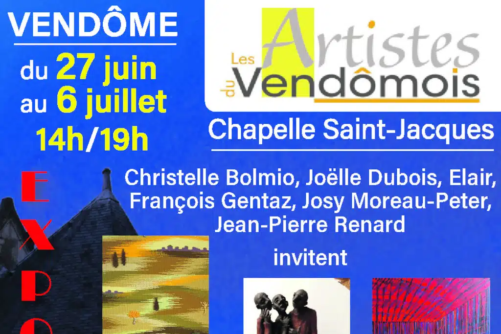 Exposition «Les Artistes du Vendômois» du 27 juin au 6 juillet de 14h à 19h à la Chapelle Saint-Jacques à Vendôme. Entrée libre