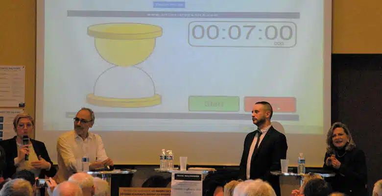 Sous forme de speed debating ou échanges type questions écrites de la part du public et réponses verbales, Viviane Bensoussan (Grande Loge Féminine), avocate ; Philippe Benhamou (Grande Loge) et Laurent Kupferman (Grand Orient), auteurs de plusieurs ouvrages sur la franc-maçonnerie, ont, sous le contrôle d’Alain-Georges Émonet, modérateur, répondu, en 7 minutes, à toute une série d’interrogations allant de la somme à consacrer en une année à la franc-maçonnerie (de 300 à 450 euros) à l’explication des termes basiques tels que loge, atelier, initiation, pratique, entrée (difficile…) ou sortie (très facile…) de loge…Pour celles et ceux qui veulent en savoir plus, il y a même un livre «La franc-maçonnerie pour les Nuls»…