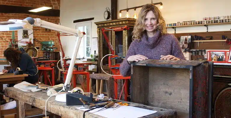 Installée depuis 8 mois au château de Fretay à Savigny-sur-Braye, Marie Hélène Poisson, artisan d’art et spécialiste française de la marqueterie Boulle, a déménagé son atelier de Paris-Vincennes. Rénovation mais également création avec cette technique si particulière qui associe sur un même meuble des matières différentes, souvent précieuses.