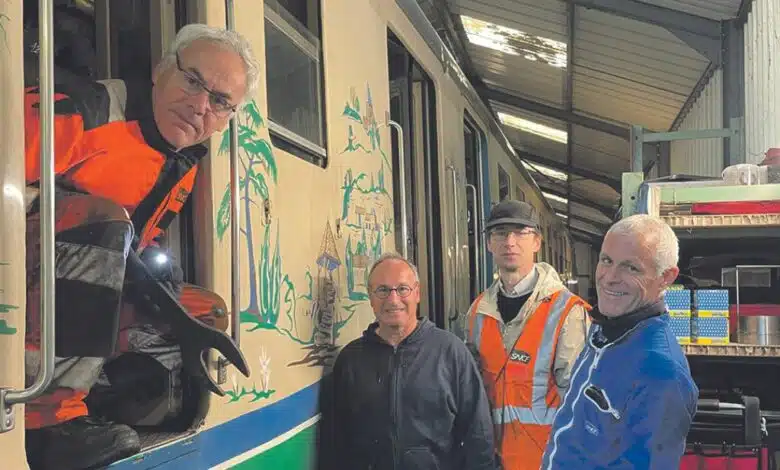 Ils sont quatre cet après-midi là, tous à s’affairer autour d’un des deux moteurs impressionnants de la micheline de 1953. «C’est un moteur Renault spécial mais tout avait été transmis à l’époque à la SNCF qui maintenait un magasin de pièces de rechange. Comme ces locomotives ne sont plus rattachées à celle-ci, il n’y a plus aucune pièce, nous devons nous débrouiller seuls» détaillent les mécaniciens. Ils avaient bien repéré cette fuite d’huile mais la découverte d’eau mélangée à celle-ci signale sûrement un problème plus grave qu’ils recherchent en éliminant au fur et à mesure les problèmes en procédant à un diagnostic minutieux.