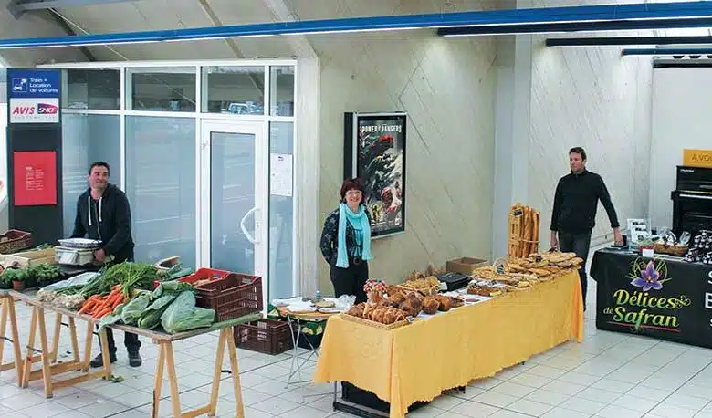 Depuis 2015, Franck Echard, maraîcher à Saint-Martin-des-Bois, vient vendre tous les vendredis une partie de sa production en direct dans la gare TGV de Vendôme-Villiers. Rejoint très vite par Emmanuelle Genevier, boulangère à Montoire-sur-le-Loir, et par Sébastien Compain, producteur de safran à Bessé-sur-Braye, ils vendent dorénavant leur production pour le plus grand plaisir des voyageurs qui, juste avant le week-end, peuvent ainsi faire leur course.