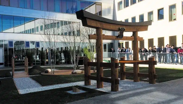 La proposition d’un jardin zen, à teneur asiatique, a donc été retenue. Une maquette a été conçue, avant de passer en taille réelle avec l’aide d’entreprises locales. Cette réalisation s’intégrait parfaitement dans la cour du lycée, de façon harmonieuse. Un lieu simple et naturel, alliant verdure, arbres, arbustes, plantes à des sols composés de jolies dalles en bois et d’une fontaine d’eau s’écoulant sur des pierres. Une porte en bois ouvre sur le jardin et donne sur un pont. L’ensemble est gracieux, et les élèves ont de quoi être fiers de leur réalisation ! Un jardin japonais en symbole, un environnement naturel en miniature. Tout ici est prétexte à la détente, au calme, et surtout à la méditation. Une réussite.